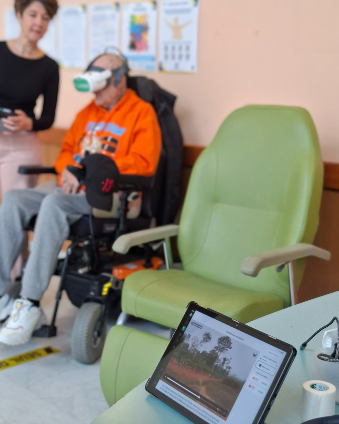 Ces derniers mois, nos casques VR ont été largement présentés lors de nos phases de test, de nos portes ouvertes et de notre soirée d’inauguration, suscitant un réel intérêt pour la réalité virtuelle appliquée aux soins hospitaliers. Mais au‑delà de ces démonstrations, une autre histoire se joue : celle de leur utilisation quotidienne dans les services, au plus près des patients. C’est là que le registre change, que l’innovation quitte les discours pour rejoindre la pratique. Pour comprendre ce que devient réellement un casque VR une fois la porte d’une chambre franchie, nous vous proposons de découvrir un cas clinique vécu par les équipes.