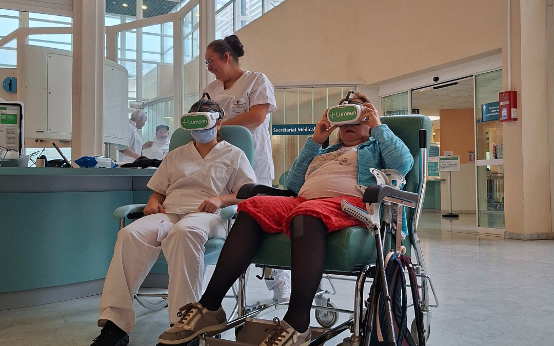 Ces derniers mois, nos casques VR ont été largement présentés lors de nos phases de test, de nos portes ouvertes et de notre soirée d’inauguration, suscitant un réel intérêt pour la réalité virtuelle appliquée aux soins hospitaliers. Mais au‑delà de ces démonstrations, une autre histoire se joue : celle de leur utilisation quotidienne dans les services, au plus près des patients. C’est là que le registre change, que l’innovation quitte les discours pour rejoindre la pratique. Pour comprendre ce que devient réellement un casque VR une fois la porte d’une chambre franchie, nous vous proposons de découvrir un cas clinique vécu par les équipes.